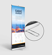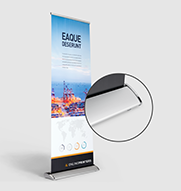 Nasze systemy roll up składają się z aluminiowego stelaża, trzech wąskich aluminiowych rurek oraz banera reklamowego z PVC i tkaniny lub folii poliestrowej. System montuje się błyskawicznie bez użycia narzędzi, a dzięki wadze tylko ok. pięciu kilogramów można go łatwo przenosić w specjalnej torbie transportowej. Klienci mogą wybrać wersje jedno- i dwustronne, a więc systemy z jednym lub dwoma banerami (przednia i tylna strona). Wszystkie roll upy drukowane są jednostronnie w czterech kolorach i jako displaye do wnętrz i na zewnątrz.