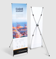 W przypadku naszych banerów L oraz X możesz wydrukować tylko sam baner lub też zamówić kompletny system wraz z drukiem i stelażem. Różnica między banerami X oraz L jest widoczna tylko od tyłu: chodzi tu o konstrukcję stelażu na odwrotnej stronie roll upa. Baner X ma stelaż w formie litery X, natomiast baner L przypomina literę L przede wszystkim za sprawą odsuniętego masztu. Banery X i L można zamówić z tych samych materiałów co nasze roll upy. Ponadto wybrać można jeszcze dodatkowy materiał Canvas, czyli tzw. tkaninę artystyczną.