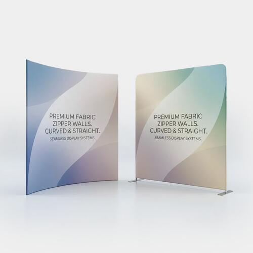 W naszym asortymencie mamy proste i łukowe ścianki wystawiennicze. Składany display tekstylny to prosta ścianka reklamowa z rozkładanym systemem stelażowym oraz tkaniną z nadrukiem, która mocowana jest za pomocą rzepów. Ścianka reklamowa dostępna jest w wersji łukowej oraz prostej i składa się z aluminiowego stelażu oraz tkaniny z nadrukiem do rozciągnięcia na stelażu. Po napięciu materiał zapinany jest na zamek błyskawiczny. Wybór odpowiedniego kształtu ścianki wystawienniczej zależy od tego, czy stoisko targowe znajduje się na przykład w rogu, przy prostej ścianie lub przy oknie lub też od Twojego pomysłu na wygląd stoiska targowego.