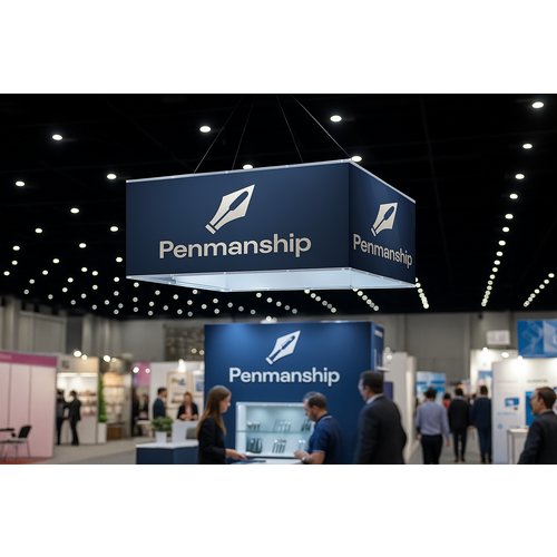 Kwadratowy baner sufitowy z tkaniny do zawieszenia.