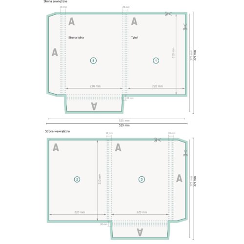 - Format danych (wraz z 2 mm spadem): 52,9 x 37,9 cm