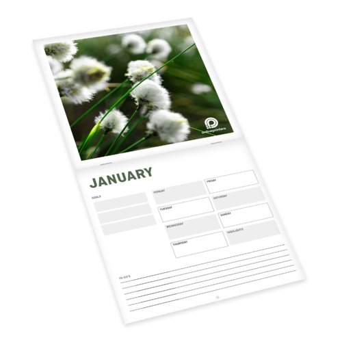 - kalendarz ścienny z praktycznym otworem i mocnym szyciem drucianym na grzbiecie