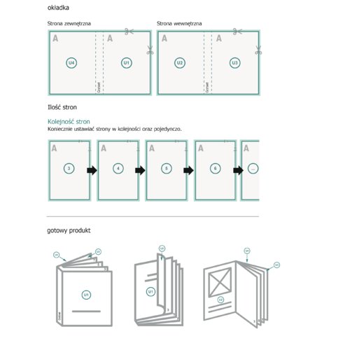 • układ stron na okładkę: utworzyć i wyeksportować jako gotowe, zmontowane podwójne strony (z uwzględnieniem szerokości grzbietu)
