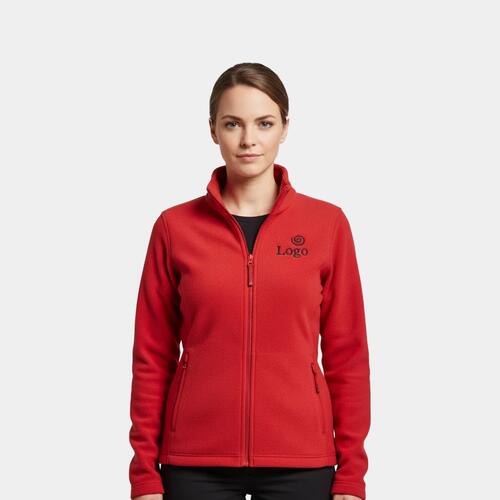 Damska kurtka polarowa z pełnym zamkiem błyskawicznym i bocznymi kieszeniami.