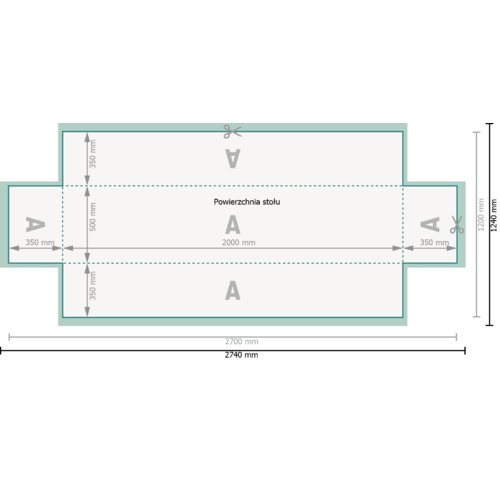- Format danych (wraz z 20 mm dodatkiem na szycie): 274 x 124 cm