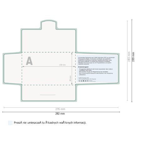 - Zwróć uwagę, że mała linia tekstowa z dalszymi informacjami zostanie automatycznie umieszczona przez nas na Twoim produkcie. Więcej informacji oraz jej pozycję znajdziesz w karcie produktu. Zwróć uwagę, że pozycja może się nieznacznie różnić.